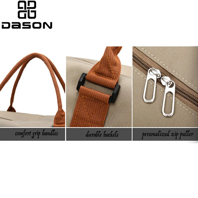 ట్రావెల్ డఫెల్ బ్యాగ్ అనేది ప్రయాణ వస్తువులను నిల్వ చేయడానికి మరియు రవాణా చేయడానికి ఉపయోగించే పెద్ద బ్యాగ్. అవి సాధారణంగా కాన్వాస్, నైలాన్ లేదా లెదర్ వంటి మన్నికైన పదార్థాలతో తయారు చేయబడతాయి మరియు జిప్పర్లు, క్లాస్ప్లు లేదా పట్టీల వంటి ఫీచర్ ఫీచర్లను కలిగి ఉంటాయి. ట్రావెల్ డఫిల్ బ్యాగ్లు వేర్వేరు పరిమాణాలు మరియు ఆకారాలలో వస్తాయి మరియు వివిధ రకాల మరియు ప్రయాణ వ్యవధికి అనుగుణంగా సూట్కేసులు, బ్యాక్ప్యాక్లు లేదా మెసెంజర్ బ్యాగ్లు మొదలైనవి కావచ్చు. అవి మీ పర్యటనకు అవసరమైన వస్తువులను నిర్వహించడానికి, రక్షించడానికి మరియు సౌకర్యవంతంగా తీసుకెళ్లడంలో సహాయపడే ప్రయాణ అవసరాలు. ఇతర సామాను కంటే ట్రావెల్ డఫిల్ బ్యాగ్లు తేలికగా ఉంటాయి మరియు తీసుకెళ్లడానికి మరియు తరలించడానికి సులభంగా ఉంటాయి. సాగదీయగల పరిమాణం: అనేక ట్రావెల్ డఫిల్ బ్యాగ్లు సాగదీయగల డిజైన్ను కలిగి ఉంటాయి కాబట్టి మీరు వాటి పరిమాణాన్ని అవసరమైన విధంగా సర్దుబాటు చేయవచ్చు. బహుముఖ: అనేక ట్రావెల్ డఫిల్ బ్యాగ్లు సులభంగా నిర్వహించడం మరియు సామాను నిల్వ చేయడం కోసం బహుళ పాకెట్లు మరియు కంపార్ట్మెంట్లను కలిగి ఉంటాయి. ఫోల్డబుల్: సులభమైన నిల్వ మరియు పోర్టబిలిటీ కోసం నా ట్రావెల్ డఫెల్ బ్యాగ్లలో కొన్నింటిని చిన్న బ్యాగ్లుగా మడవవచ్చు.