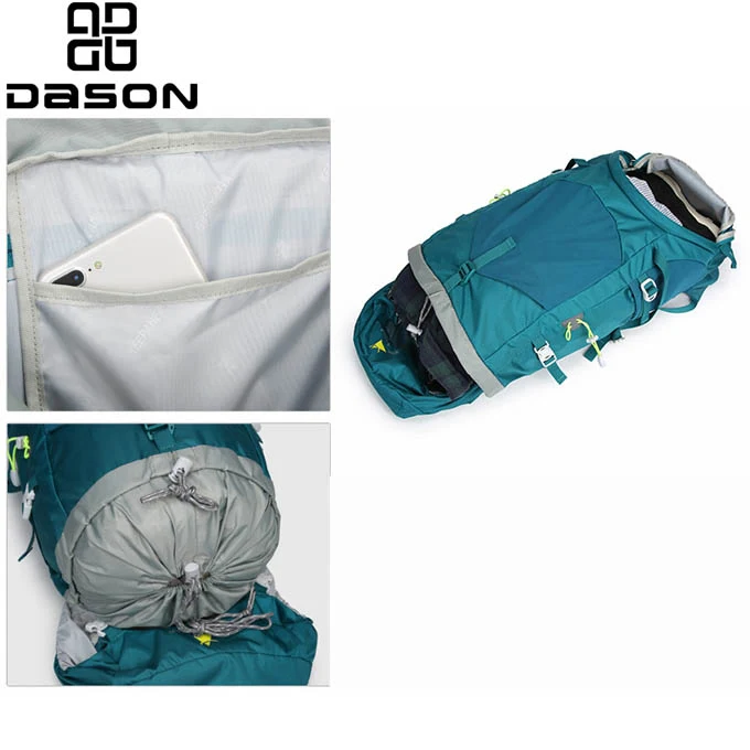 50L హైకింగ్ బ్యాక్ప్యాక్ ప్రధాన పెద్ద కంపార్ట్మెంట్ డ్రాట్రింగ్ ఓపెనింగ్తో డిజైన్; దిగువన వేరు చేయబడిన షూ జిప్ పెద్ద జేబు