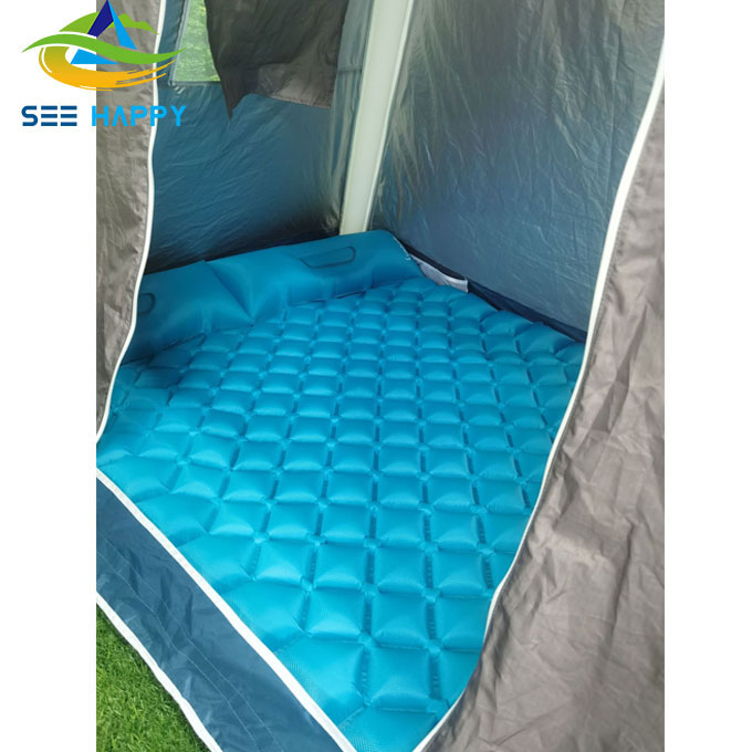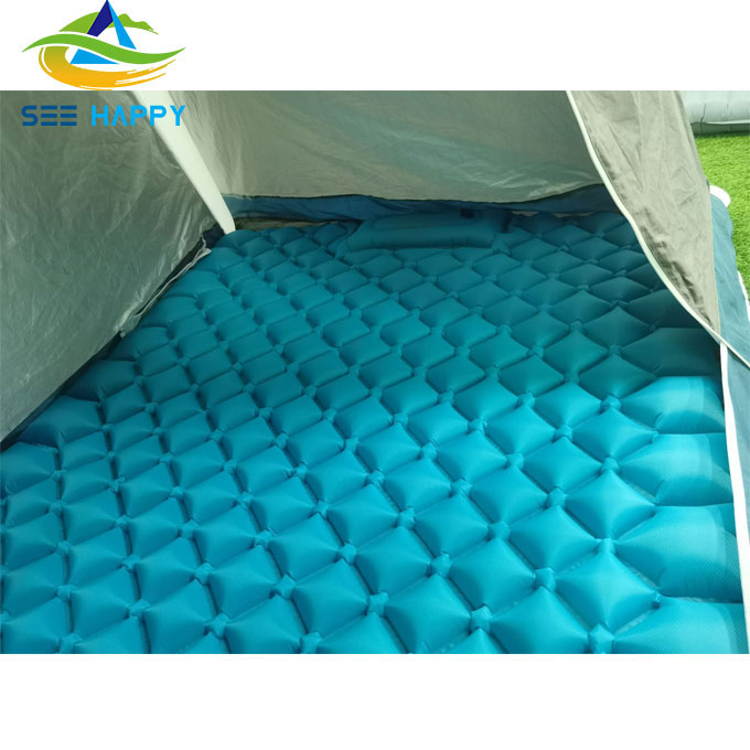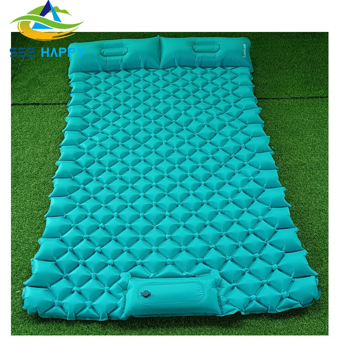 మేము TPU కోటింగ్తో మృదుత్వం మరియు మన్నికైన నైలాన్ ఫాబ్రిక్ని ఉపయోగించిన డబుల్ గాలితో కూడిన క్యాంపింగ్ ప్యాడ్లు,