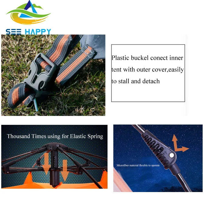 పాప్-అప్ టెంట్ పాప్ అప్ అవుతుంది మరియు నిర్మాణం లేకుండా దాని స్వంత ఆకృతిని తీసుకుంటుంది, మీరు సాధారణంగా దానిని కట్టాలి. చాలా తరచుగా ఇద్దరు వ్యక్తుల కోసం రూపొందించబడింది, ఈ గుడారాలు ఉపయోగించడానికి సులభమైనవి మరియు అనుభవం లేని క్యాంపర్లకు గొప్పవి. ఏర్పాటు చేయడానికి సులభమైన టెంట్ రకం. సెకన్లలో సెటప్ చేయడం సులభం, సులభంగా రవాణా మరియు నిల్వ కోసం కాంపాక్ట్ మరియు తేలికైనది, పాదముద్ర ఎల్లప్పుడూ చిన్నదిగా ఉంటుంది, కాబట్టి ఈ గుడారాలను దాదాపు ఎక్కడైనా ఉంచవచ్చు.