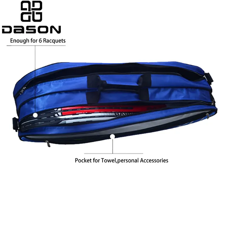 మా రాకెట్ టెన్నిస్ బ్యాగ్లో 6 బ్యాడ్మింటన్ రాకెట్లు వేయడానికి సరిపోతుంది