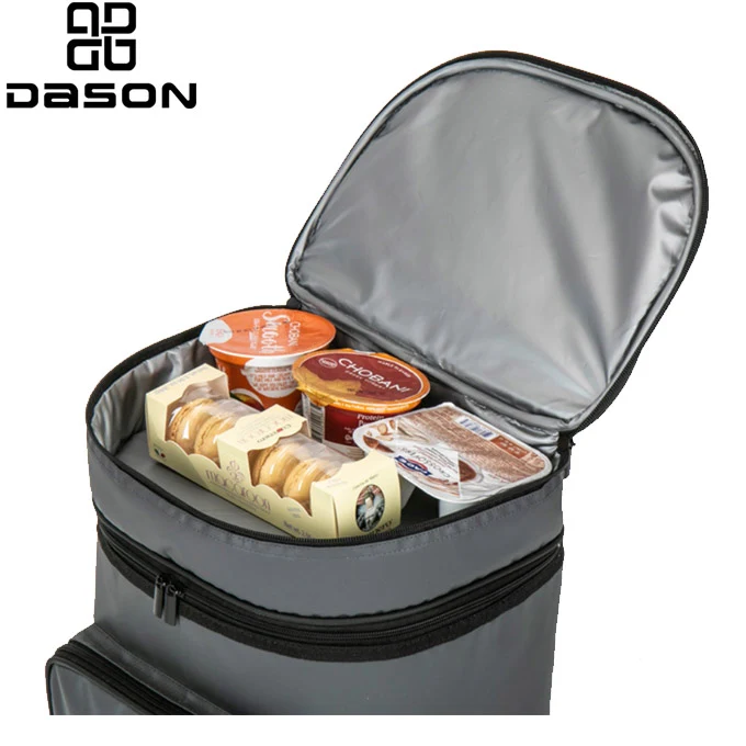 కొన్ని చిన్న ఆహారం, చిరుతిండిని ఉంచడానికి టాప్ మూత కూలర్ కంపార్ట్మెంట్; రౌండ్ జిప్ ఓపెనింగ్/క్లోజింగ్తో